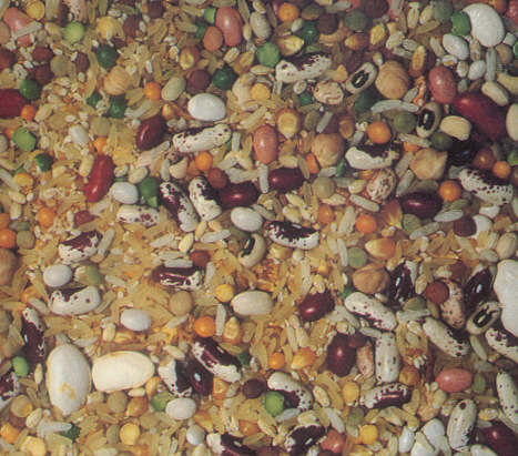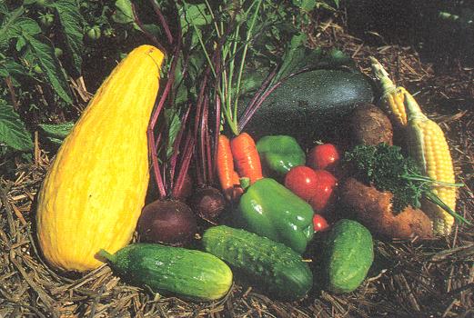 Garden vegetables contain sugars, starches, vitamins and minerals. Food Guide Pyramid Beans and grains provide protein and carbohydrate.