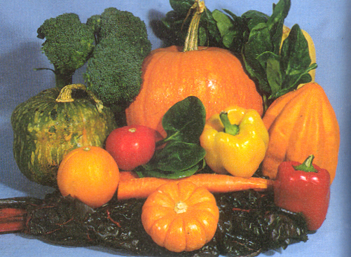 Fresh fruits and vegetables contain vitamins. These vegetables and fruits are rich source of vitamin A.